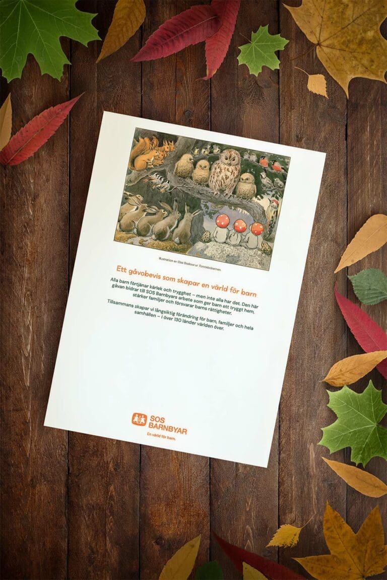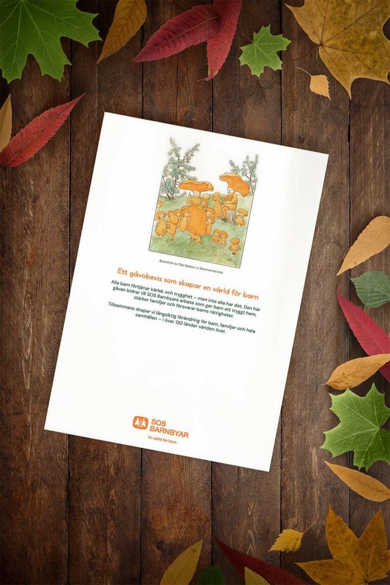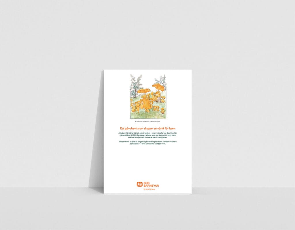 SOS Barnbyar erbjuder digitala gåvobevis med fina Elsa Beskow-motiv här i vår gåvoshop. Ett digitalt gåvobevis är en perfekt present att ge även för dig som är ute i sista minuten eftersom att det levereras direkt via mejl.