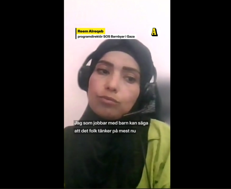 Reem Alreqeb är programchef för SOS Barnbyar i Gaza och är på plats i staden Khan Younis. Hon beskriver läget som akut och bortom katastrofalt.