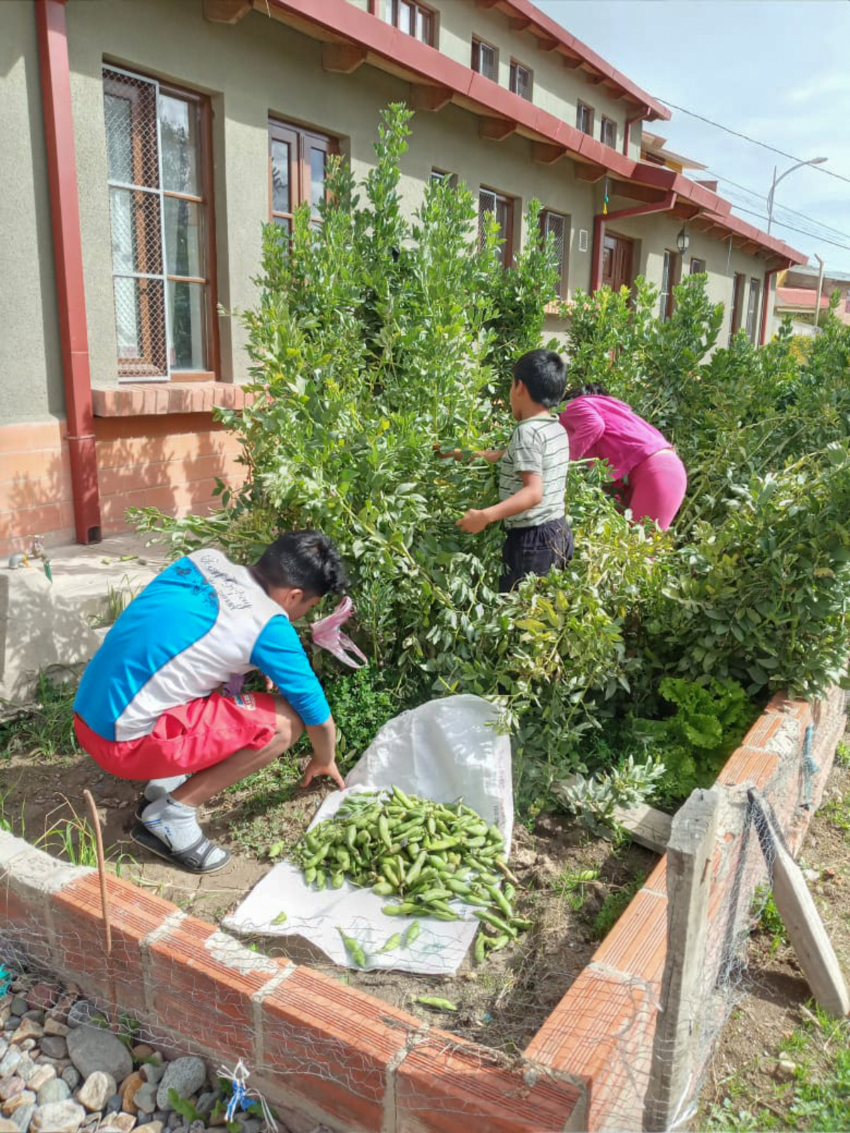 I Bolivia umgås barn, ungdomar och vuxna genom att vara ute i trädgården tillsammans. Hela landet har satts i karantän och barnen stannar hemma i barnbyarna. För att sysselsätta sig passade barn, ungdomar, SOS-mammor och personal i Bolivia på att jobba i trädgården. En perfekt aktivitet där barnen och ungdomarna får vara utomhus och röra på sig. Tillsammans skördade de färska grönsaker och lagade sedan mat av skörden.
