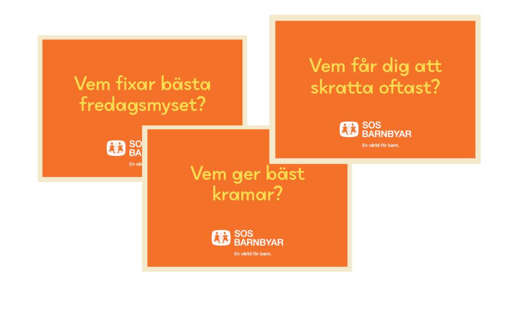 Läs mer härIdag lever över 220 miljoner barn i världen under extremt utsatta förhållanden på grund av att de helt saknar, eller riskerar att förlora, den grundläggande omsorgen av en förälder. Det är 1 av 10 barn. Dessa barn glöms alltför ofta bort av myndigheter och blir osynliga för vuxenvärlden. Många löper stor risk att utsättas för övergrepp, utnyttjas som barnsoldater eller tvingas in i prostitution och trafficking.