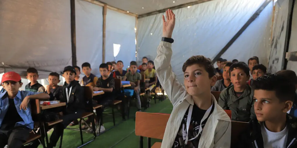Vändningen kom när SOS Barnbyar öppnade en skola i tältlägret, där Issam fick möjlighet att komma bort från kriget en stund. Men det var svårt för Issam att delta i skolarbetet som andra barn. Hans synskada gör att han inte helt kan öppna ena ögat i solljus och att han är väldigt långsynt. Som tur är lyckades SOS Barnbyar få fram anpassat skolmaterial, som gör att Issam kan delta som alla andra.